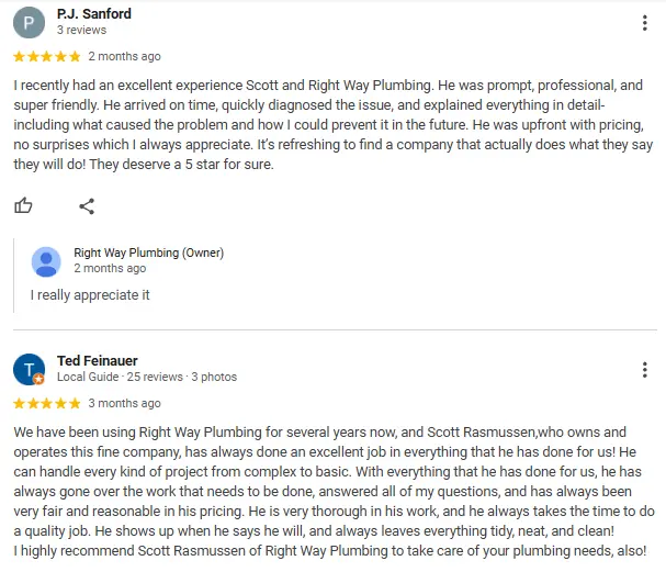 We know finding the right plumber can be a process and will take careful steps to make sure you are satisfied with our work and your decision of choosing Right Way Plumbing!
